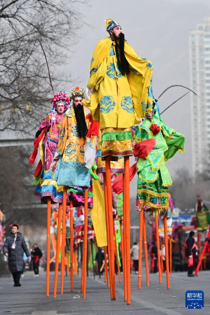2月19日,在青海省西宁市,演员在社火巡游活动中表演。新华社