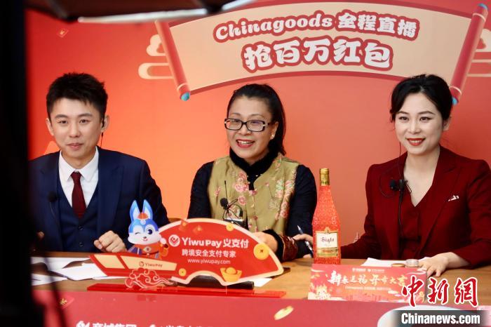 义乌国际商贸城开市活动同步进行现场直播,嘉宾做客直播间。中新网