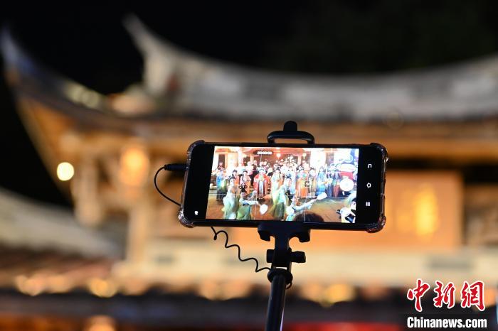 龙年新春,福建漳州市举办迎新春主题系列文旅活动,有着1000多年历史的漳州古城“火”出圈,漳州古城内,花样巡游、新春市集、文艺斗阵、集章打卡、灯谜大会等文旅活动轮番登场,其中独具闽南特色的花样民俗巡游活动,给海内外游客留下深刻印象。2月21日晚,“凌波”传世·龙年水仙花神巡游在福建漳州古城上演,吸引不少游客前往观赏。图为游客拍照水仙花神巡游活动。