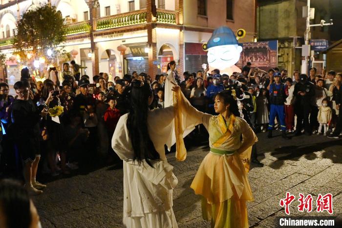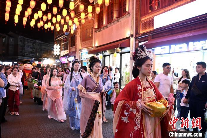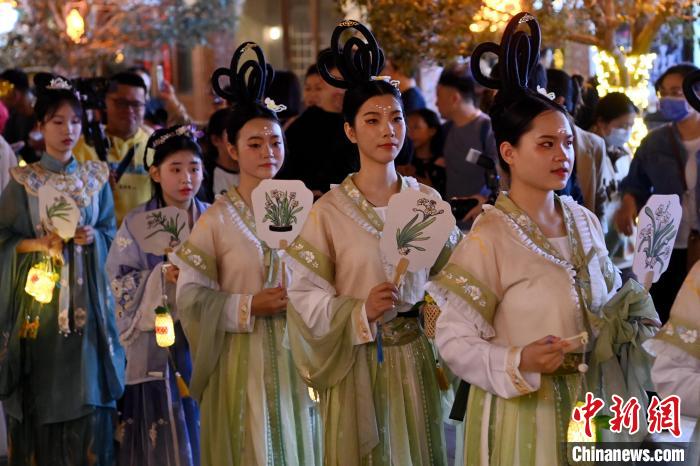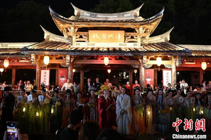 2月21日晚,“凌波”传世·龙年水仙花神巡游在福建漳州古城上演。