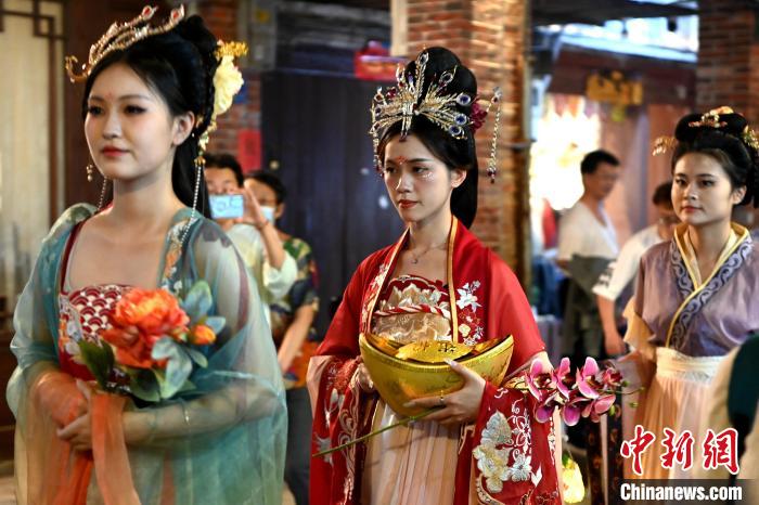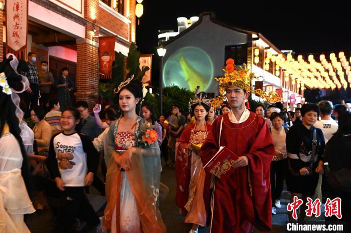 水仙花神在漳州古城内巡游。