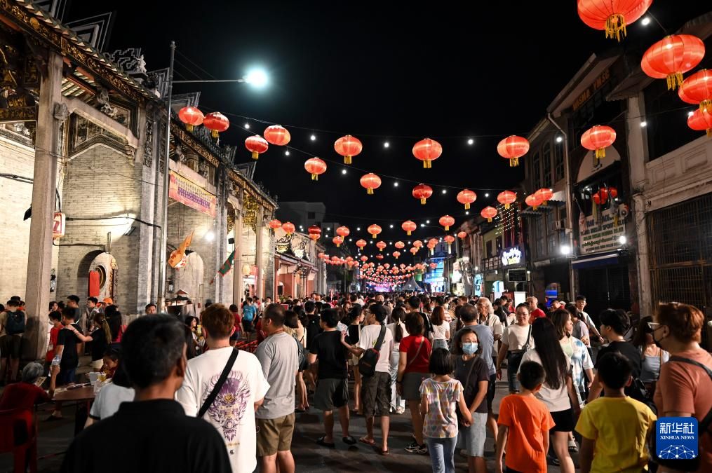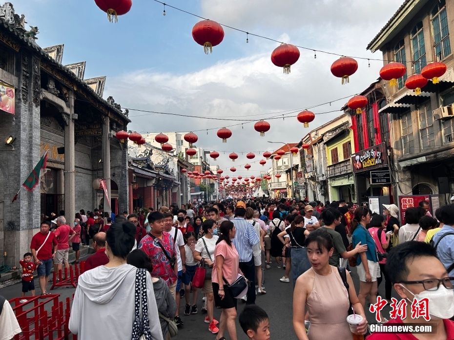 马来西亚槟城州首府乔治市古迹区街道挂上红灯笼。中新网