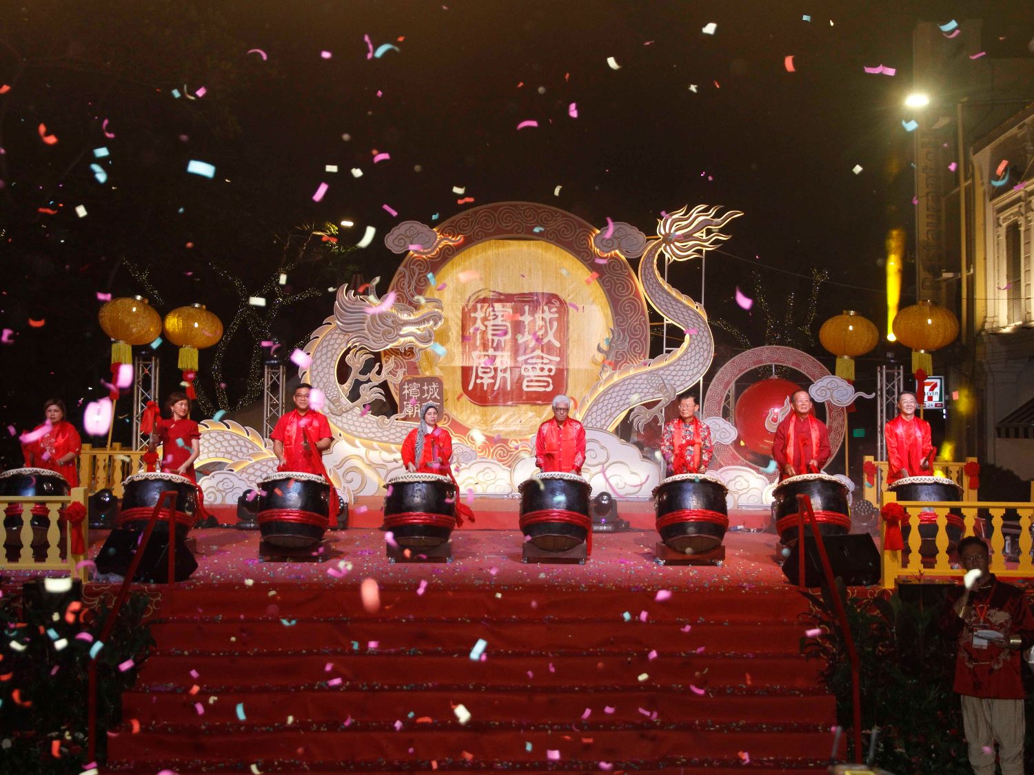 2月18日,嘉宾在2024甲辰年槟城庙会开幕仪式上击鼓。中国驻槟城总领事馆网站