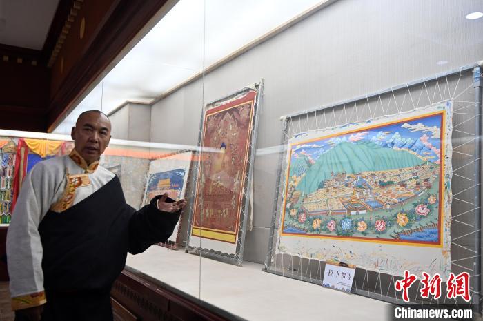 交巴加布展示以拉卜楞寺为主题的唐卡作品。交巴加布不仅继承了传统唐卡技艺,更在创新中展现了个人特色。他结合现代审美和绘画技巧,使作品既保留了传统的韵味,又具有鲜明的现代气息。这种独特的艺术风格使他的作品在众多唐卡中脱颖而出,成为藏族民众和艺术爱好者争相收藏的艺术珍品。中新网