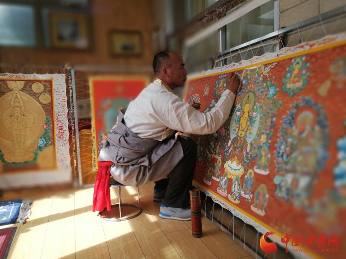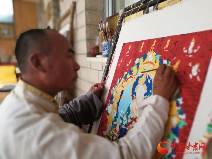 交巴加布绘制唐卡。中国甘肃网
