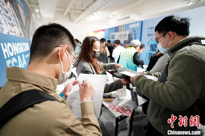 3月3日,“香港高才招聘展览会2024”在香港上环信德中心举行,共60多家在港公司现场设招聘展位,还有200多家公司在线上接受应聘者申请,总计提供约3000个职位,活动吸引大批参会者入场应聘。图为参会者走进招聘会现场。