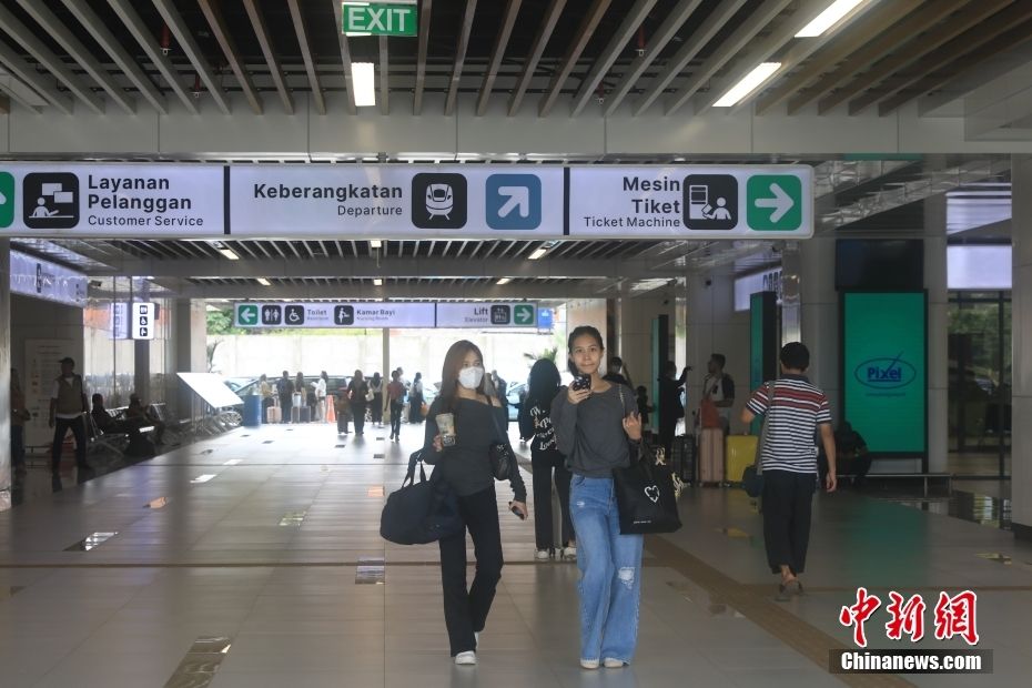 3月3日,民众在雅加达哈利姆高铁站入口。