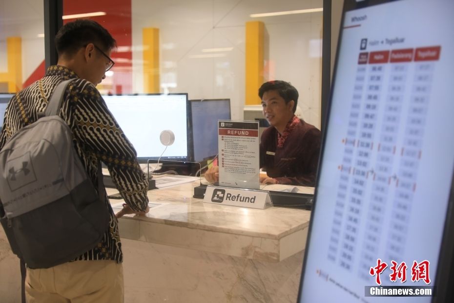 3月3日,在印度尼西亚雅加达哈利姆高铁站,民众在人工售票窗口咨询。