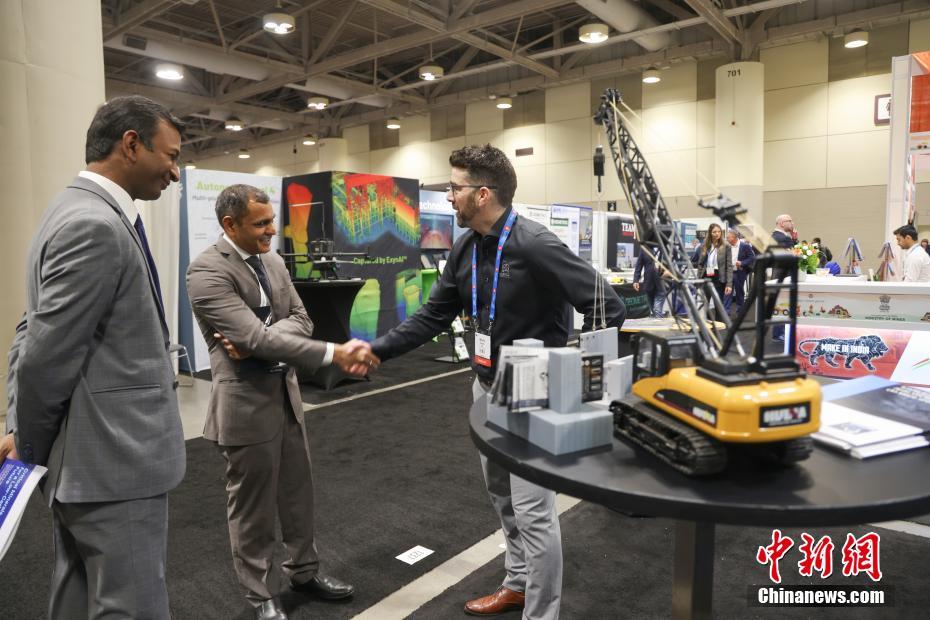 参展商的钻探设备吸引参观者驻足。