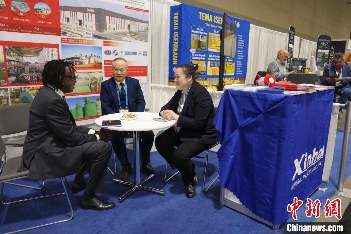 中国企业山东鑫海矿业技术装备股份有限公司参展代表与客商洽谈。