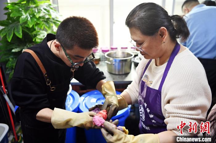 3月5日,丝巾扎染体验项目老师指导妇女学员。中新网