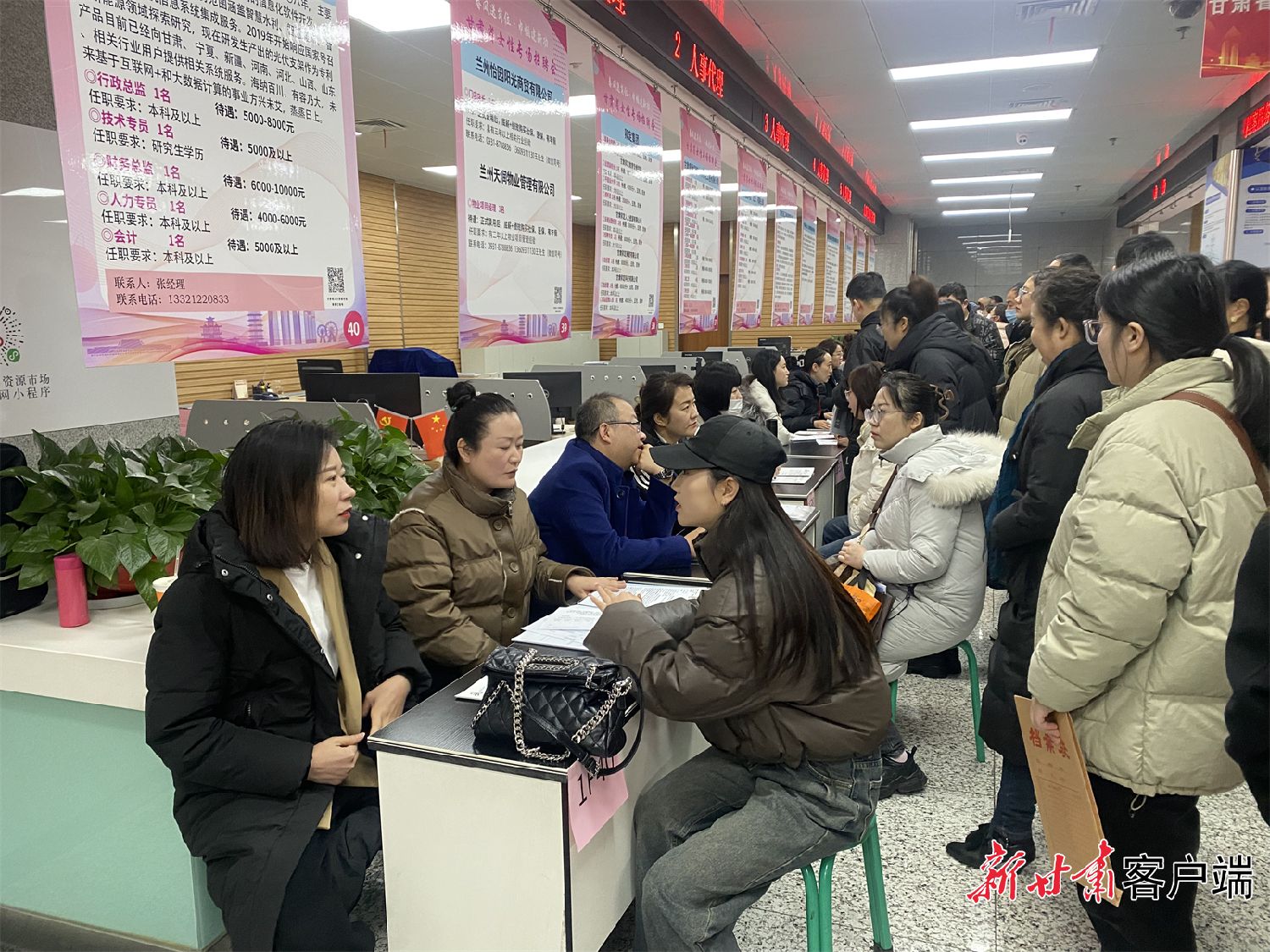 3月2日至3日,“春风送岗位·巾帼建新功”甘肃省女性专场招聘会及直播带岗活动举办。本次专场招聘会旨在为用人单位和城乡低收入妇女、高校女毕业生搭建对接平台、创造就业机会,采取现场招聘、网上招聘和直播带岗的方式同步进行。图为招聘会现场。“新甘肃”客户端
