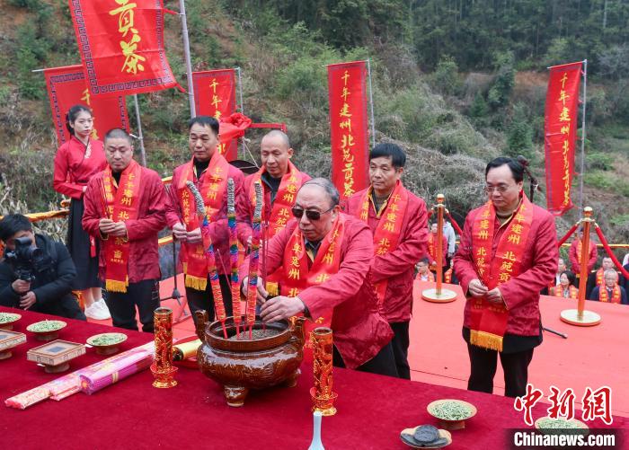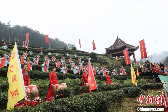 3月5日是中国传统二十四节气中的“惊蛰”,福建省建瓯市在位于东峰镇的北苑御焙遗址举办被列入非物质文化遗产项目名录的北苑喊山活动,广大茶农祈盼风调雨顺,茶事顺利。图为茶农依次献上“灵芽”“御泉”和“龙团凤饼”,上香,行鞠躬礼。