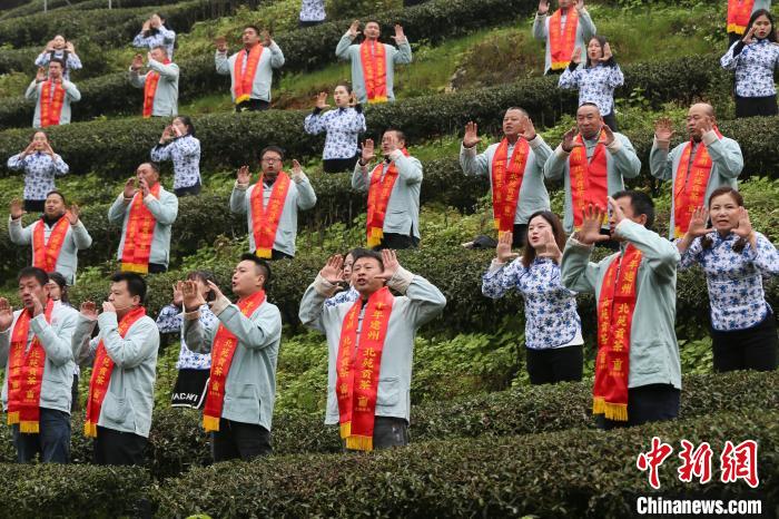 恭诵祭文后全体人员面对茶山,置身茶丛中以击鼓为号,喊山祈愿。