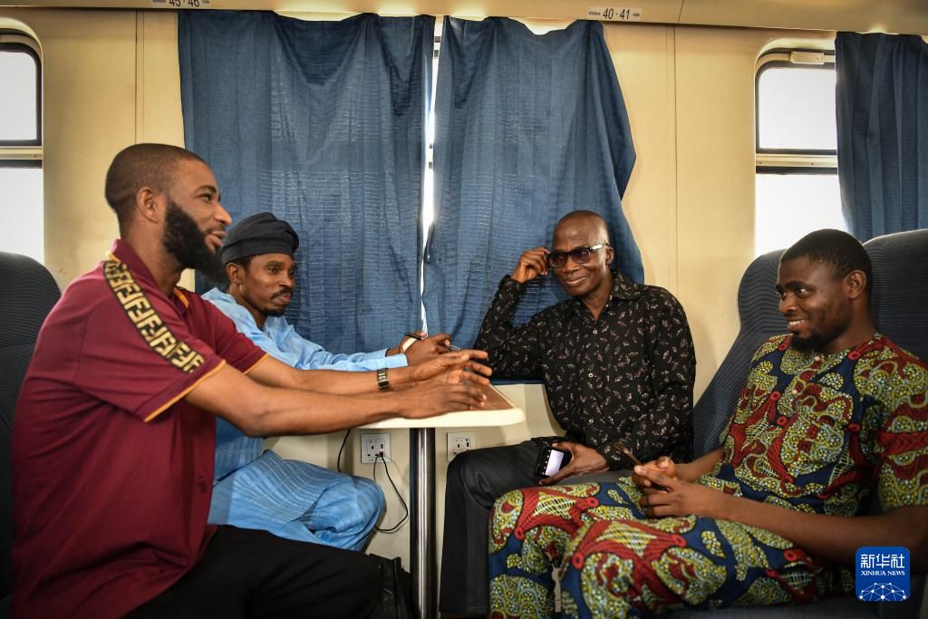 3月2日,在尼日利亚拉各斯的拉伊铁路莫博拉吉·约翰逊火车站,乘客坐在车厢内。新华社