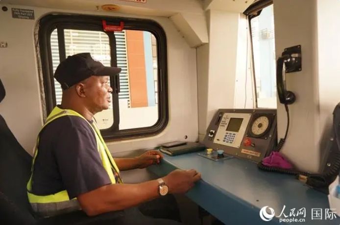 近日,由中国土木工程集团公司承建的尼日利亚拉各斯轻轨红线项目在伊凯贾车站举行一期通车暨二期签约仪式。该项目是中国土木继拉各斯轻轨蓝线后实施的第二条轻轨,与拉伊铁路共线运营,利用拉伊铁路富余运能,承担拉伊铁路通道内拉各斯市区客运交通。图为红线司机阿尼玛沙翁驾驶车辆。人民网