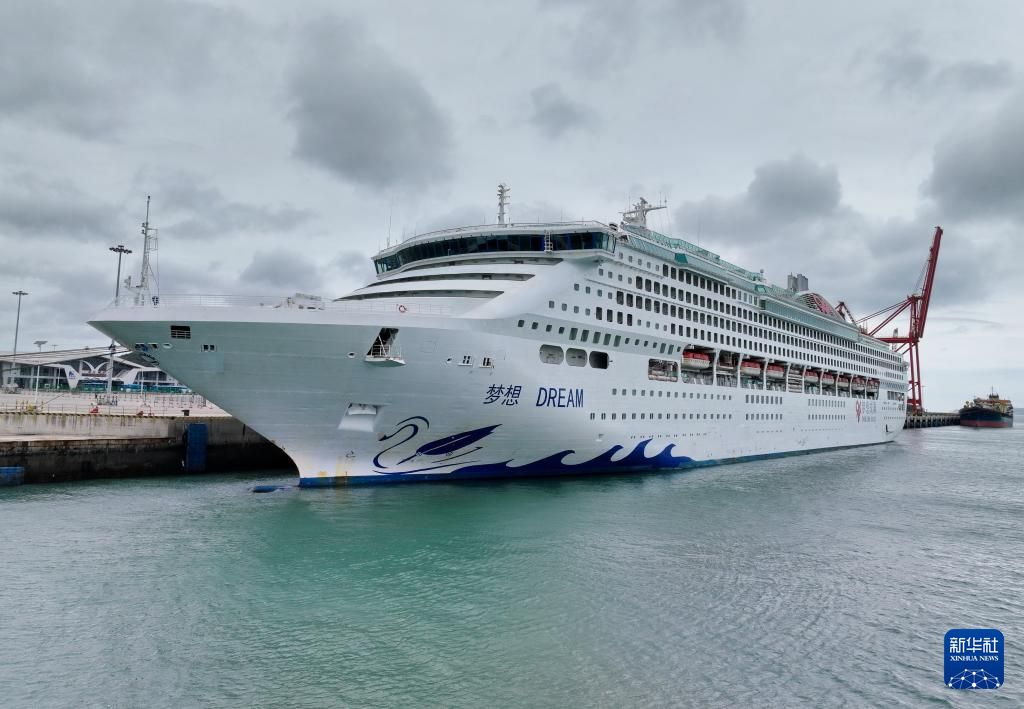 3月6日,首条以福建平潭国际旅游岛为母港的国际航线运营正式拉开帷幕,搭载1334名旅客的“梦想”号国际邮轮从这里始发,开启3天2晚的日本石垣之旅。据悉,此次首航的“梦想”号邮轮计划以平潭为母港执行前往日本、韩国两地的5个航次,拉开平潭国际邮轮航线常态化运营的序幕,也进一步丰富平潭国际旅游岛的旅游产品类型。近年来,平潭大力发挥海岛资源优势,此条国际邮轮航线的正式运营,旨在充实福建的海上航线,为旅游市场注入新活力。图为3月6日,“梦想”号国际邮轮停靠在平潭国际邮轮中心码头(无人机照片)。新华社