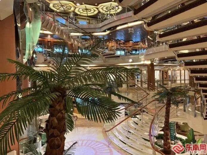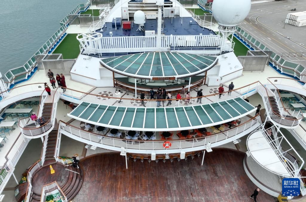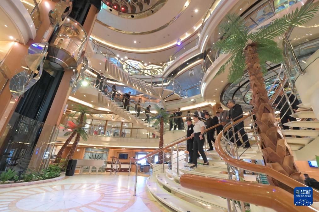 3月6日,旅客在“梦想”号国际邮轮上参观。新华社