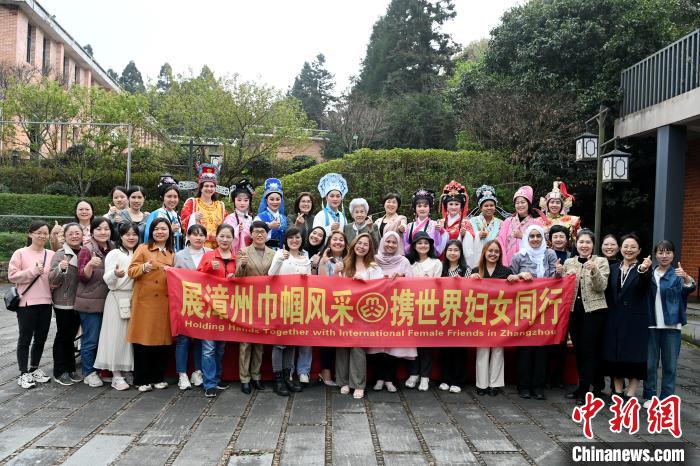 中外妇女前往平和高峰谷,观看非遗表演、现场体验潮剧文化。中新网