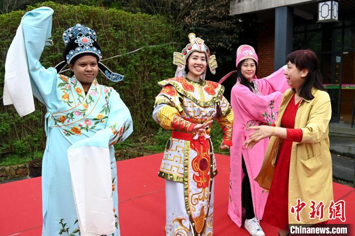 东盟女官员开心体验潮剧文化。中新网