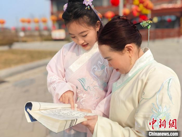 3月6日,河北省衡水市武邑县开展了“传承国韵之美彰显巾帼风采”暨庆“三八”联谊活动。在武邑县工作生活的多名外籍女性友人,同现场的当地女性一起穿上汉服,学习中国茶道、香道文化,绘制中国国画,品读中国诗词,体验体育项目投壶,在汉风雅韵中迎接“三八”国际妇女节。图为越南友人黄氏萍(右)在学中国古诗词。中新网
