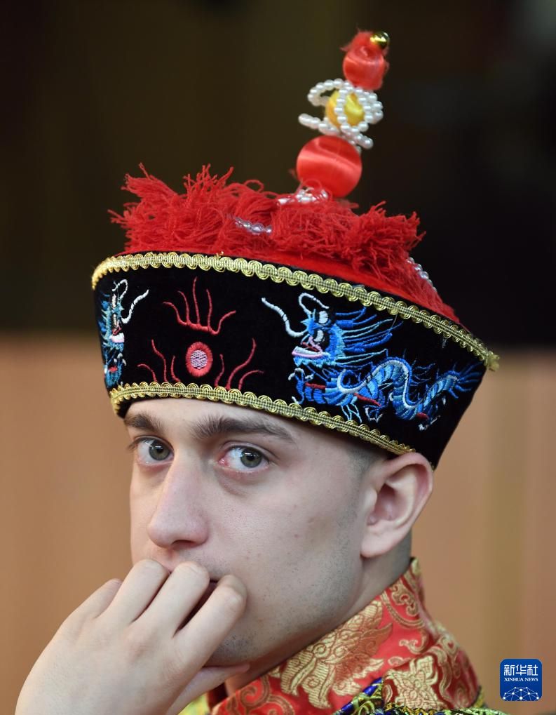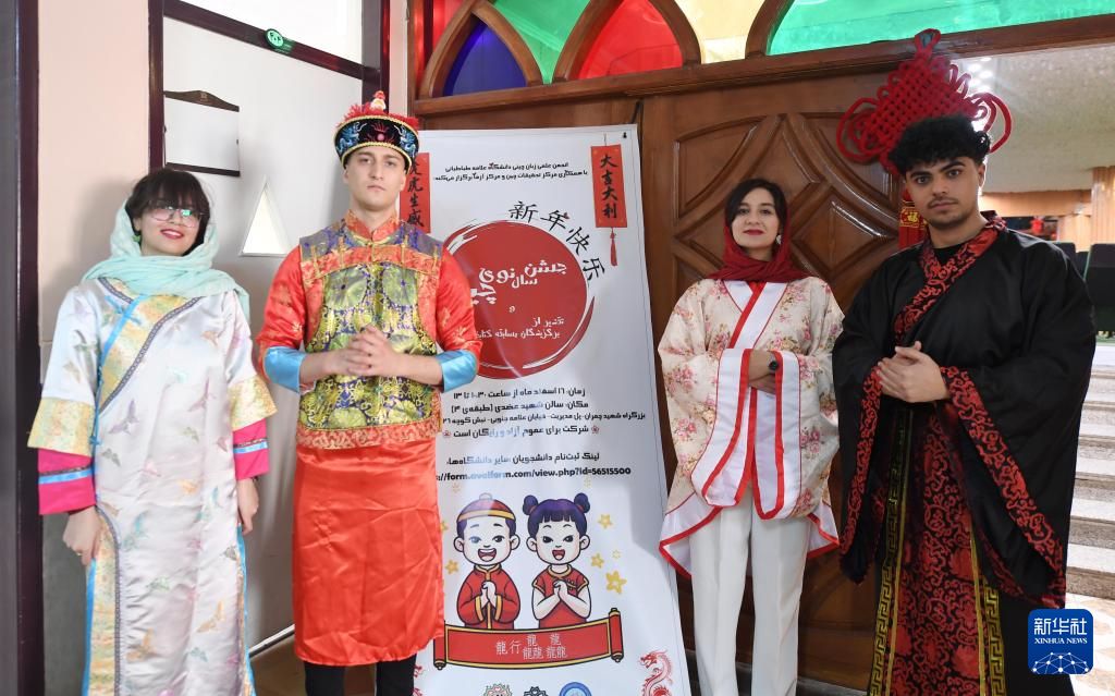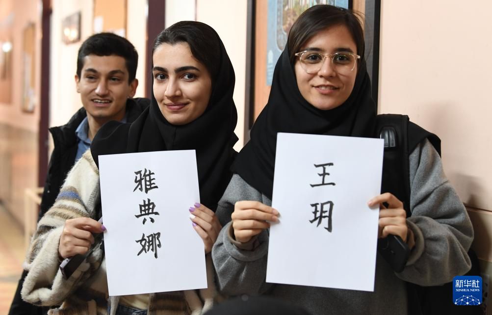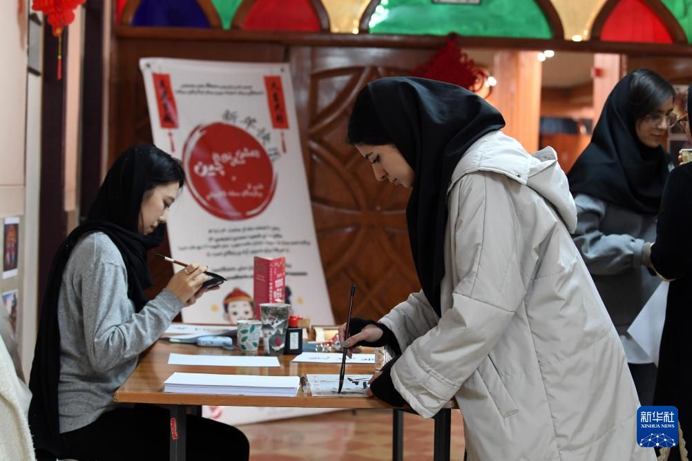 3月6日,伊朗阿拉梅塔巴塔巴依大学汉语系举行中国文化体验活动。来自汉语系的学生们参加中国书法、品茶、诗歌朗诵以及中国传统习俗讲解等体验活动。图为一名学生体验中国传统服饰。