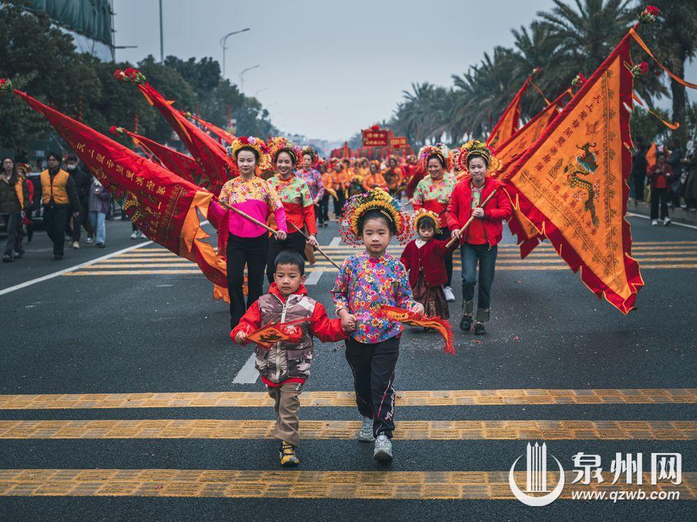 妈祖“天香巡境”现场彩旗招展,场面十分热闹。泉州网