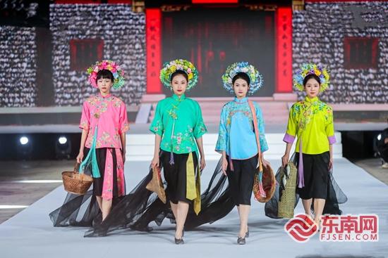 3月8日,“这YOUNG的丰泽 花YOUNG的非遗”2024年丰泽区“海丝·蟳埔”国潮非遗文化节——海丝国潮非遗文化时尚大秀在真武庙广场举行。图为非遗闽绣技艺融入蟳埔女传统服饰。东南网/丰泽区委宣传部供图