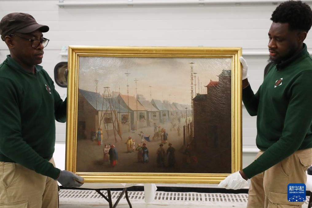 3月11日,工作人员打包油画《路易十四戎装像》。
