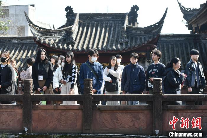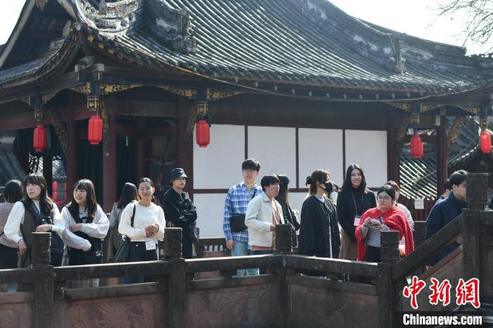 3月13日,日本大学生游览街子古镇。