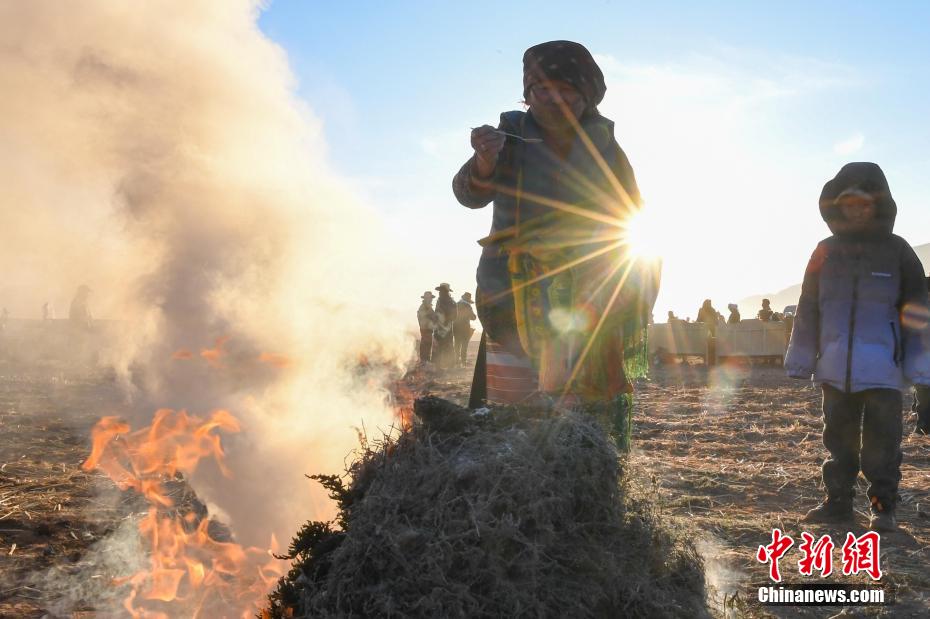 拉萨市林周县春堆村村民在春耕仪式前煨桑。中新网