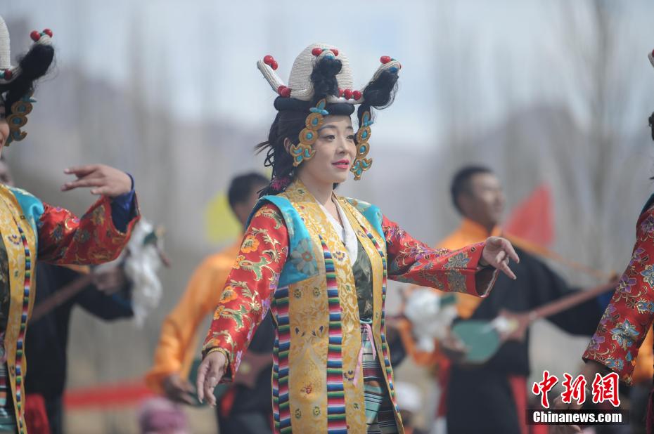 拉萨市林周县强嘎村春耕仪式上的文艺表演。中新网