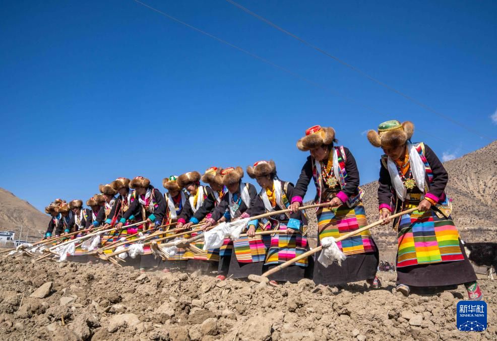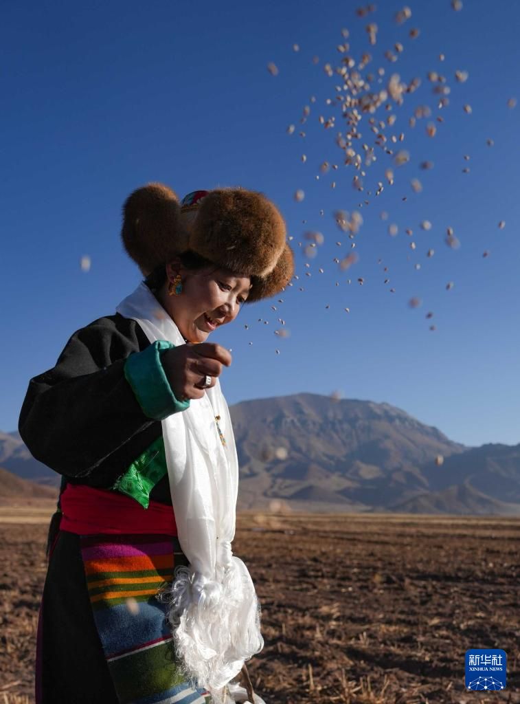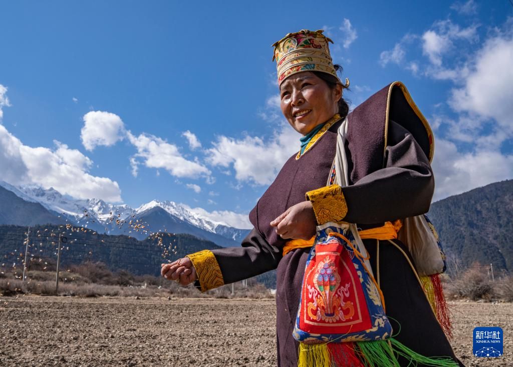 3月16日(藏历1月24日),是西藏农民举行一年一度春耕大典的日子。人们身着节日盛装,家家户户端着自家的“切玛”(象征五谷丰登),带着青稞酒、酥油茶等聚在田间,互敬青稞酒,开始撒种,祈求全年风调雨顺、五谷丰登。图为林芝市工布江达县巴河镇秀巴村的春耕仪式现场,农民播撒种子。新华社