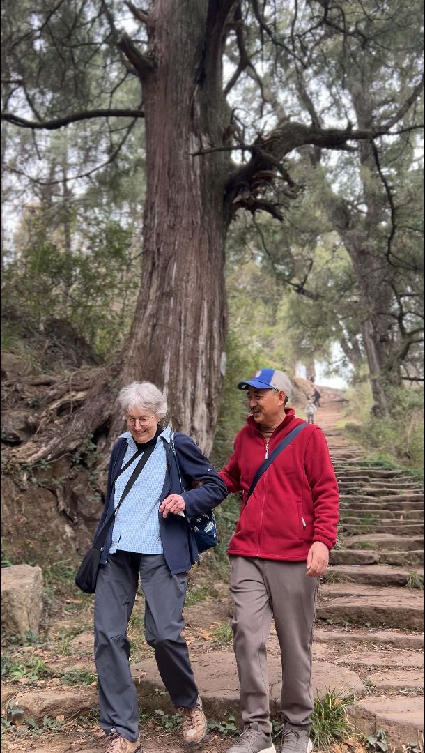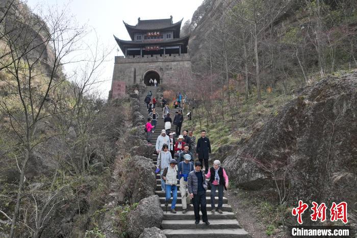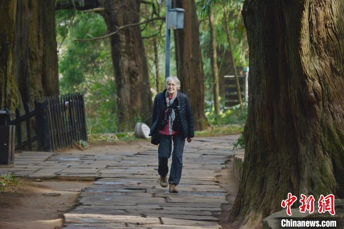 3月18日,81岁的美国老太太贾和普带领朋友走过蜀道剑门关。中新网