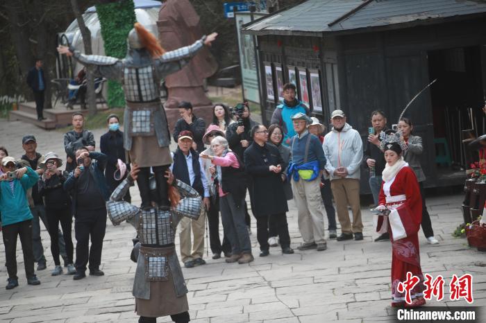来自美国的“蜀道迷”们在剑门关景区被中国蜀道文化实景表演吸引。中新网