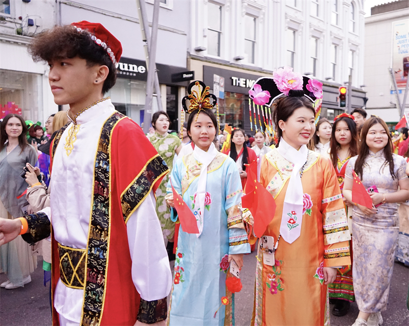 科克大学组织了中国少数民族文化展示队伍,身着民族服饰的队员们展示着丰富多彩的中国风情。人民网/科克大学孔子学院供图