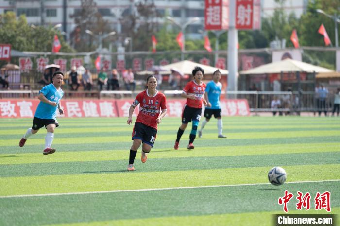 3月24日香港警察男女联队(红衣)与榕江县寿洞村男女联队比赛中。中新网