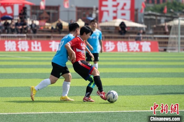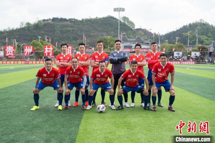 3月23日香港警察足球会队(红衣)与榕江县寨蒿村足球队在比赛中。中新网