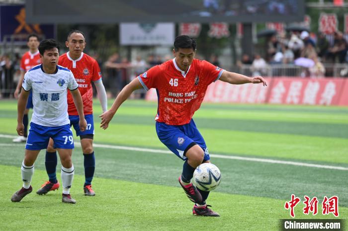 3月23日至24日,香港警察足球会队赴约贵州“村超”进行了三场友谊赛。香港警察足球会队此行包括男子队、警官队以及女子队共40人。据悉,此次是“村超”与香港球队的第三次交流:第一次是香港明星足球队赴“村超”踢球交流,第二次是“村超”球员受邀到香港大球场踢球交流,再加上此次比赛,两地足球队的三次交流,加深了贵州榕江与香港之间的友谊。图为3月23日,在贵州省黔东南苗族侗族自治州榕江县“村超”足球场,香港警察足球会队与榕江县寨蒿村足球队的比赛打响。新华社