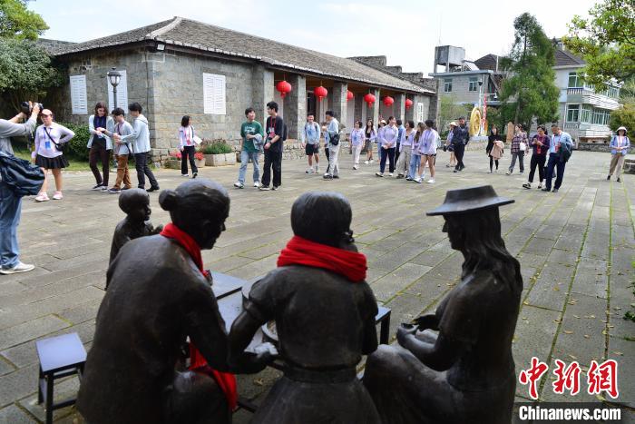 参加八闽行活动的青少年走进鼓岭万国公益社参观,了解福州“鼓岭故事”。中新网