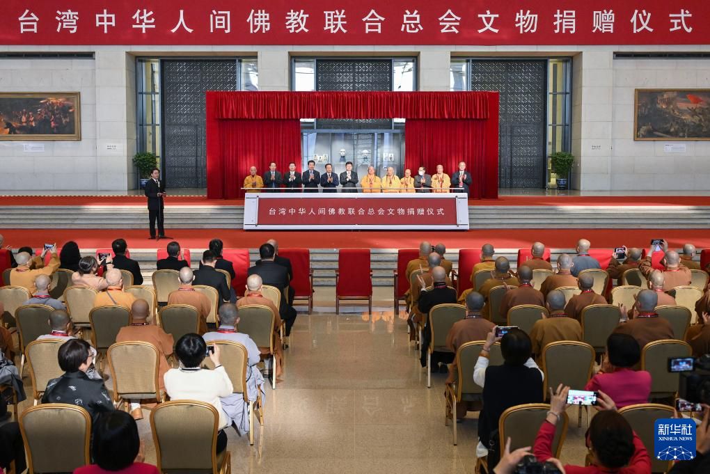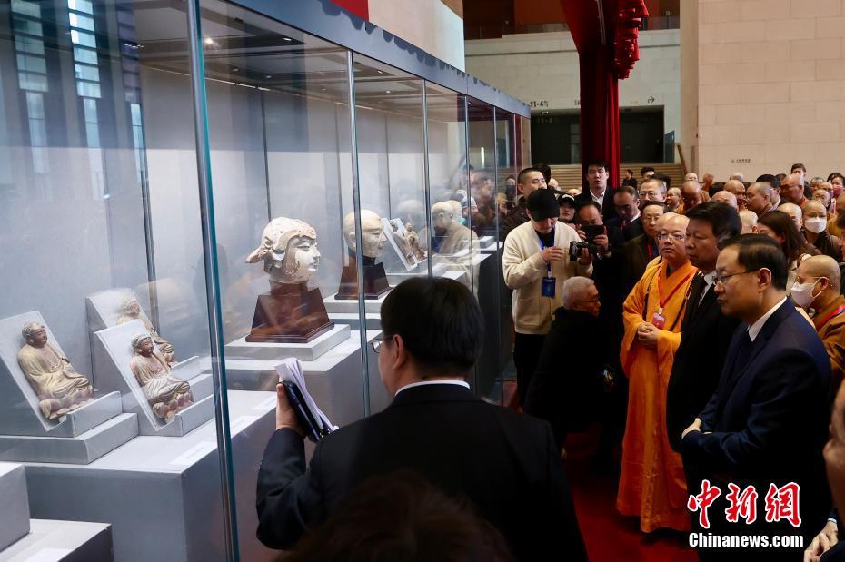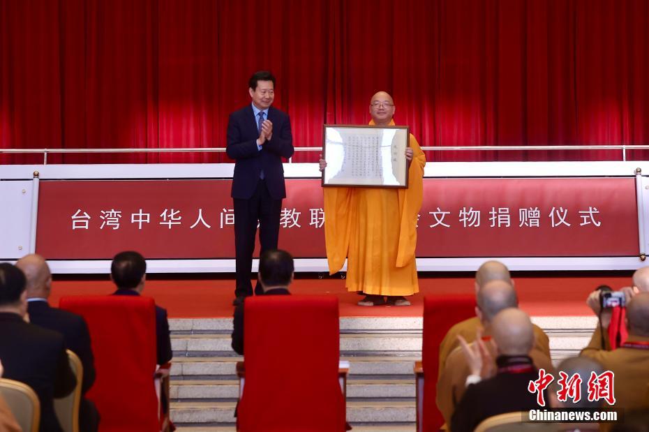 3月25日,由台湾中华人间佛教联合总会捐赠的文物(部分)在仪式现场展示。新华社