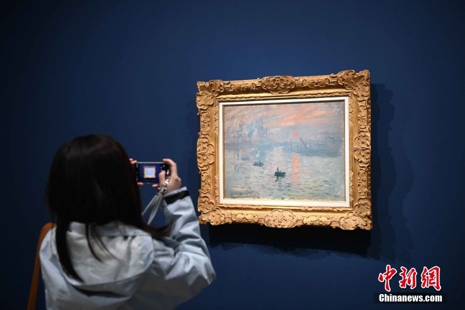 观展者在拍摄法国画家莫奈的《印象·日出》。该画被公认为印象派的代表作。