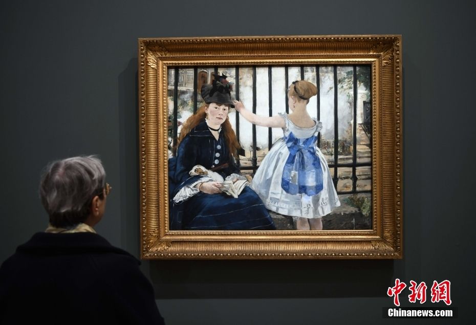 观展者在欣赏法国画家马奈的作品《铁路》。这是马奈最知名的画作之一。