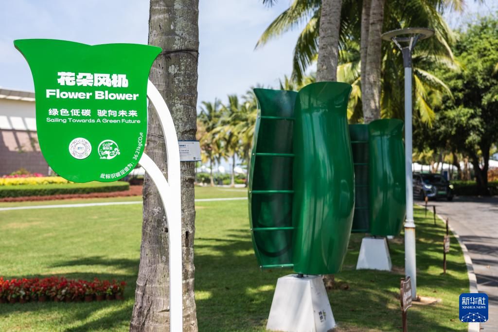 3月27日拍摄的博鳌近零碳示范区内的花朵风机。花朵风机用来收集风能,是岛内可再生能源利用项目之一。新华社
