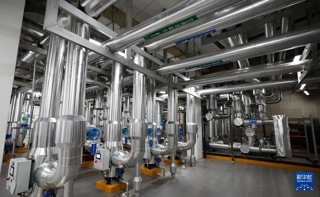 博鳌亚洲论坛大酒店改造过后的制冷机房。作为建筑绿色化改造的项目之一,更换了高能效设备设施系统的制冷机房工作将更加高效。新华社