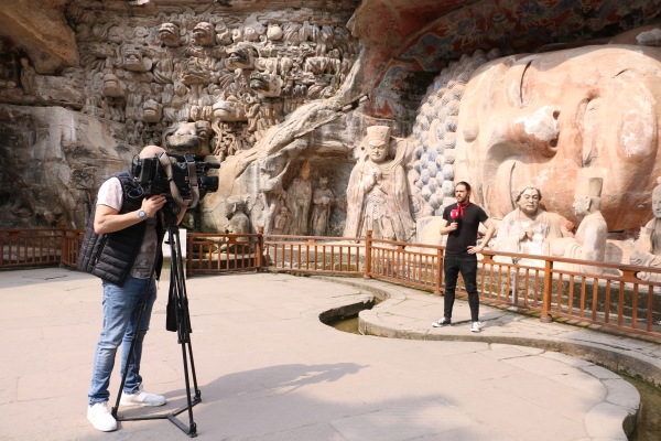 3月26日,匈牙利国家级媒体摄制组走进大足感知石刻魅力。人民网/大足区委宣传部供图