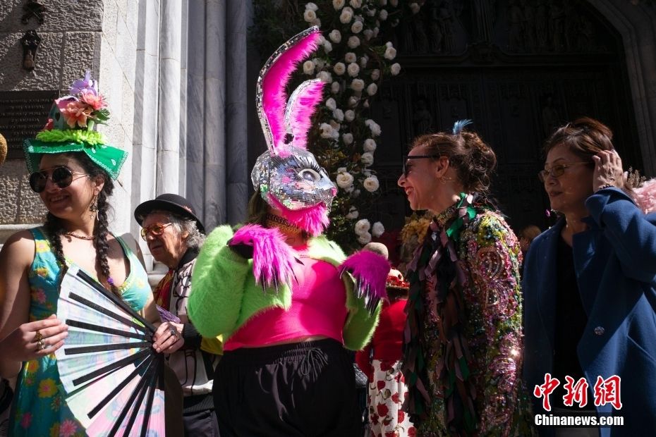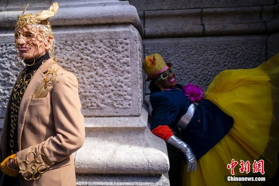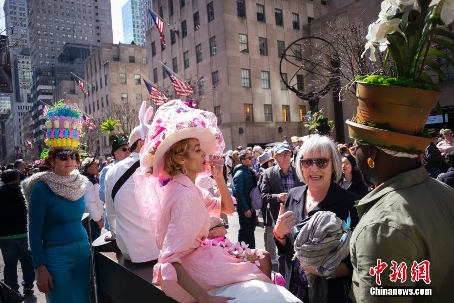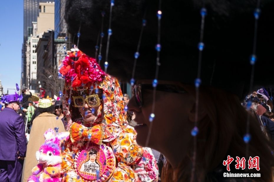 当地时间3月31日,人们在纽约参加复活节花帽游行。中新网