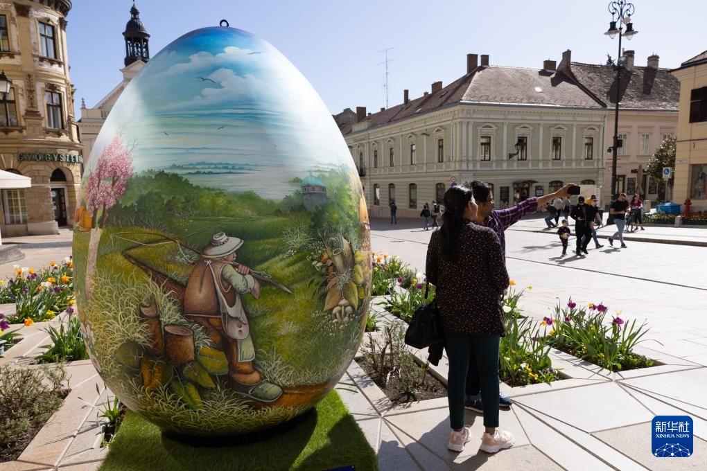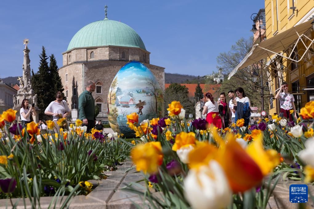 3月30日,在匈牙利南部城市佩奇街头,复活节巨型彩蛋吸引人们参观。新华社