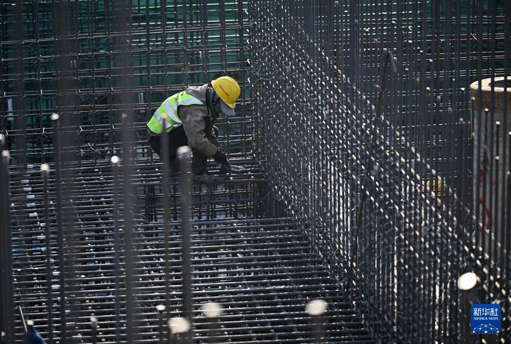 3月31日,工人在空客天津第二条总装线项目建设现场施工作业。新华社