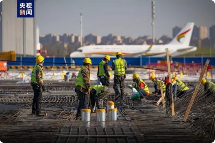 空客天津A320系列飞机第二条总装线项目共包括209总装厂房、214号喷漆机库、219号最终装配及工作组机库等13个单体建筑。图为3月31日,工人在空客天津第二条总装线项目建设现场施工作业。大陆央视新闻客户端